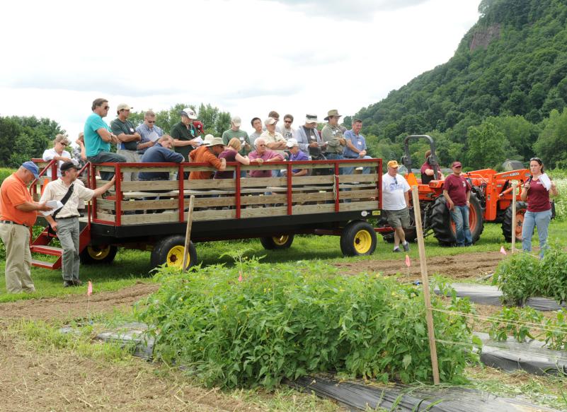 Agricultural field day at the University of Massachusetts Crop and Animal Research Farm is an annual chance for farmers to see the latest innovations in crop research, and the event last Tuesday event drew more than 60 people to view 18 ongoing trials, including one that integrated pig and vegetable production.