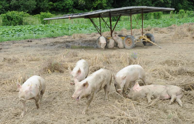 Feasting on the cover crop, he said, the pigs are eating half their normal volume of grain as part of a diversified, low-labor system providing a vegetable as well as meat.
